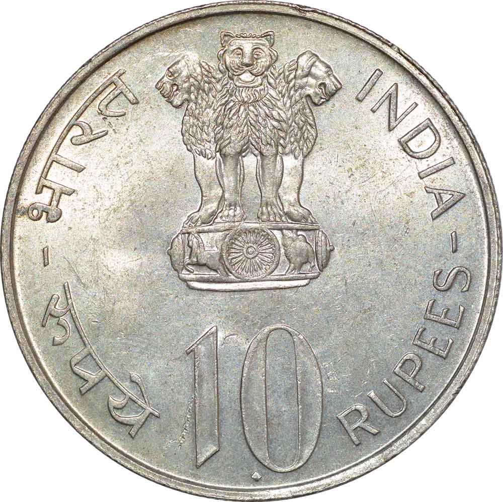 1972 Silver Ten Rupees of 25th Anniversary of Independence of Bombay Mint.