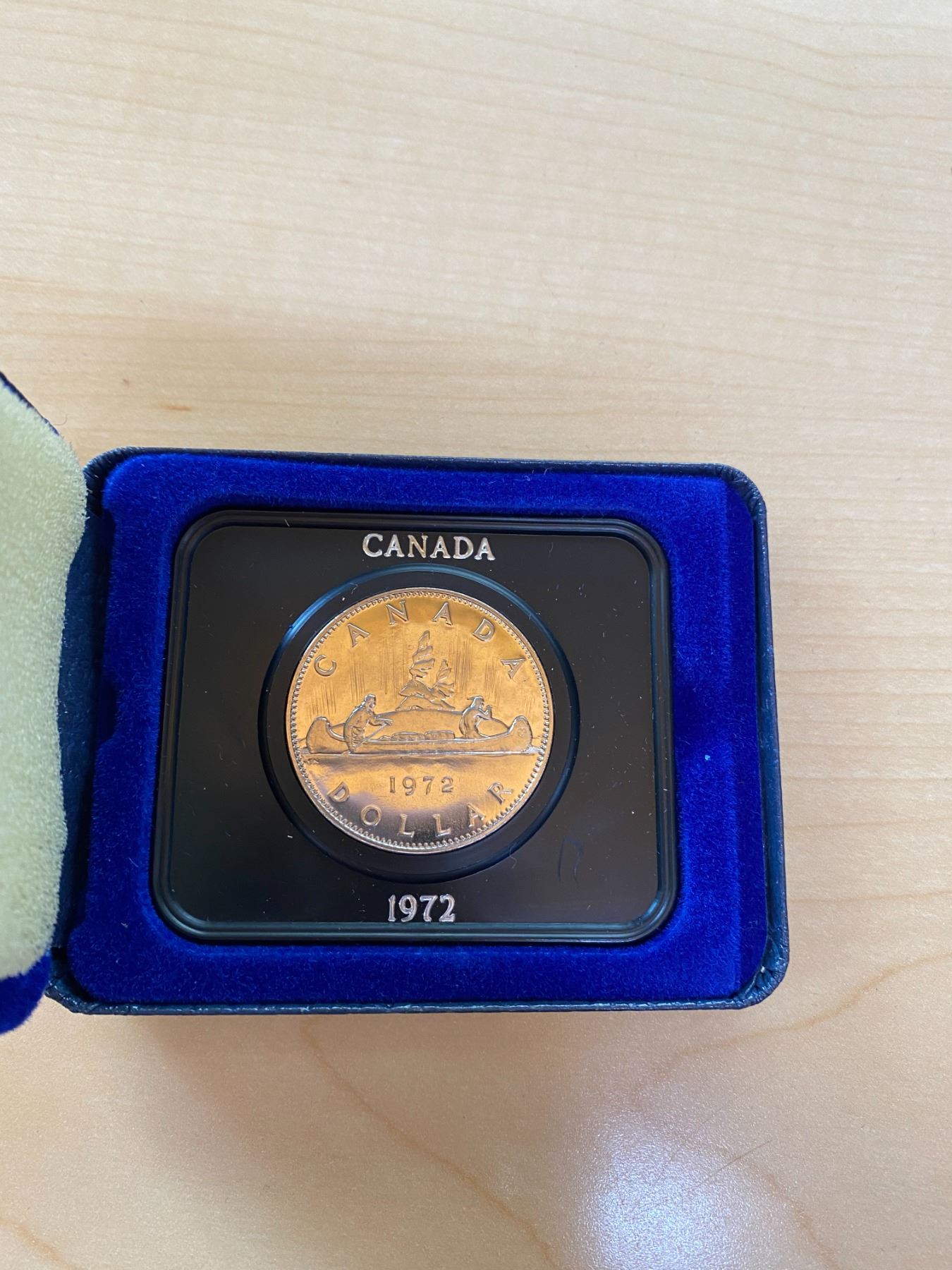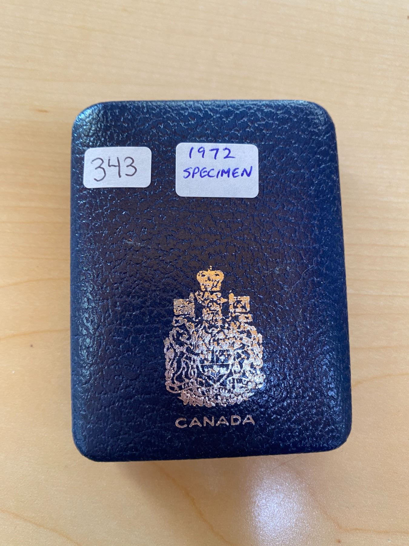 1972 Specimen Dollar. Housed in its original blue leatherette case. Specimen.