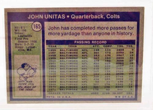1972 TOPPS #165 JOHN UNITAS FOOTBALL CARD PSA GRADED 8.5