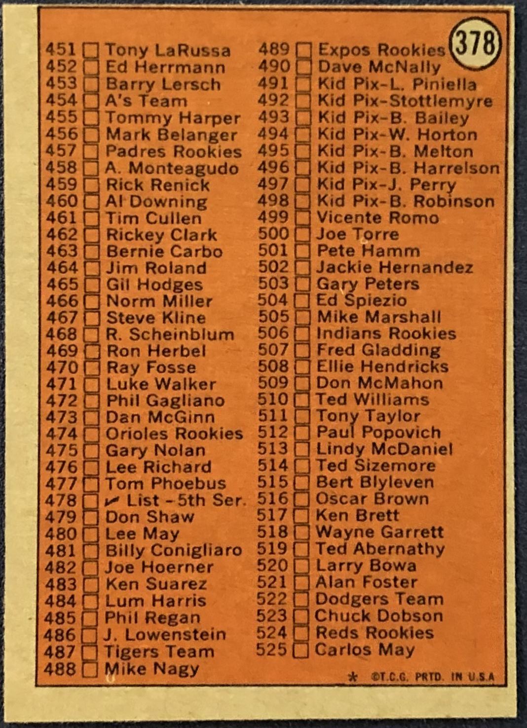 Card #378 MLB, baseball, vintage