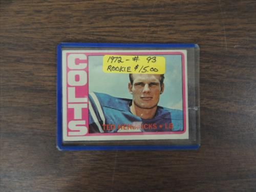 1972 TOPPS #93 FOOTBALL ROOKIE CARD TED HENDRICKS. AS SHOWN. VIEW PICTURE FOR DETAIL.