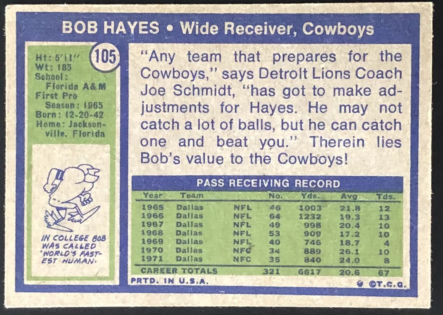 Card #105 NFL, football, vintage, hall of fame