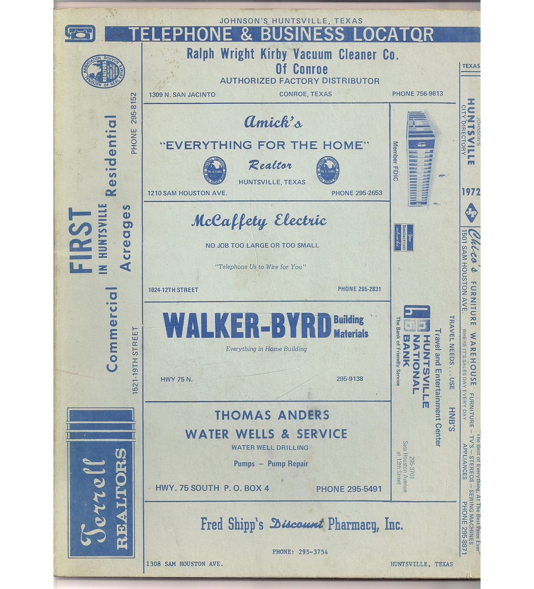 1972 Telephone Book & Business Locator for Huntsville, Texas