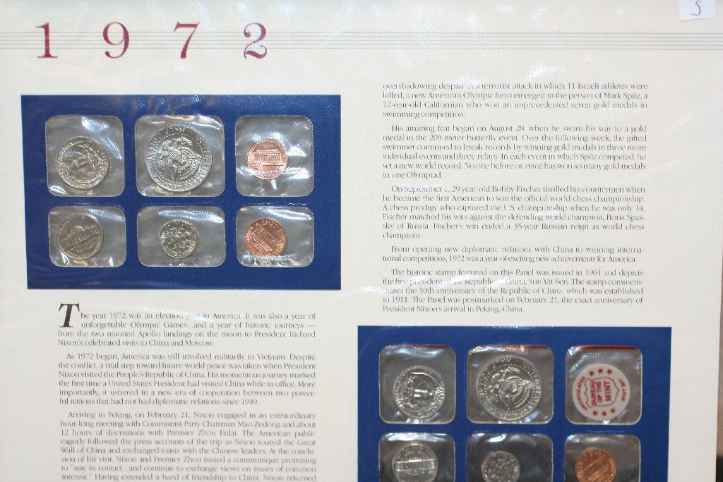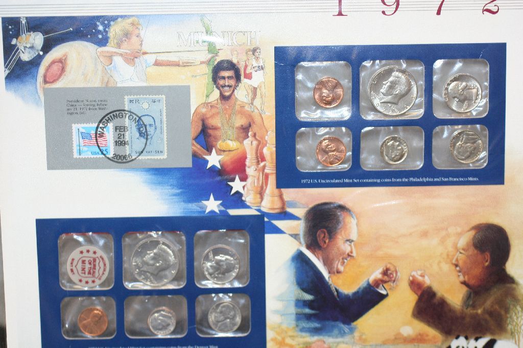 1972 US Mint Coin Set W/Postal Stamps Commerating President Nixon visits China Dated 1994; P,S&D Mints; UNC