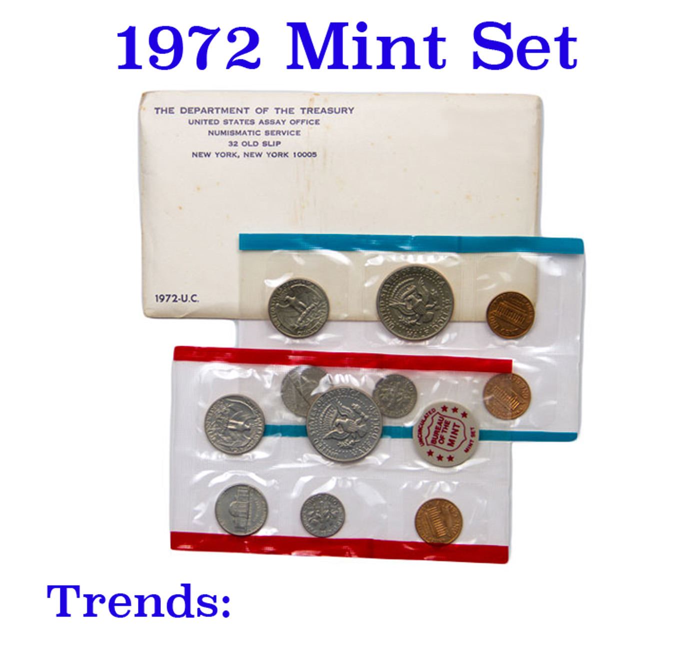 1972 United States Mint Set in Original Government Packaging. This is a regular 1972 mint set and contains both the entire Philadelphia and Denver Issues for 1972. In the original mint cellophane with the envelope.