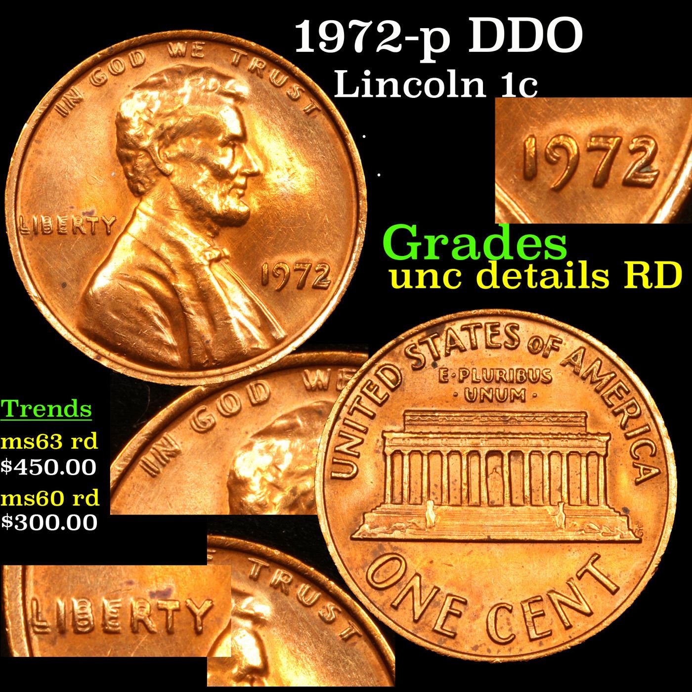 1972-p DDO Lincoln Cent 1c Grades Unc details RD.