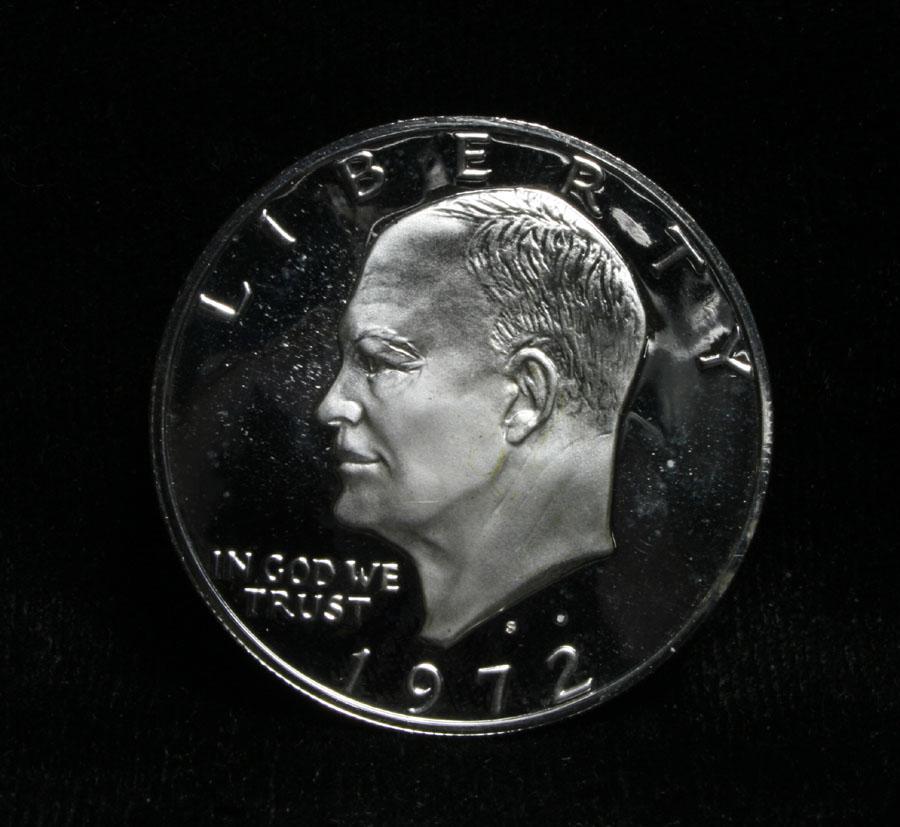 A nice Deep cameo example of this 40% silver Proof Ike Dollar. The Silver content is .32 Ounces of silver, or $11.50 at current Silver prices. Estimated Value $15