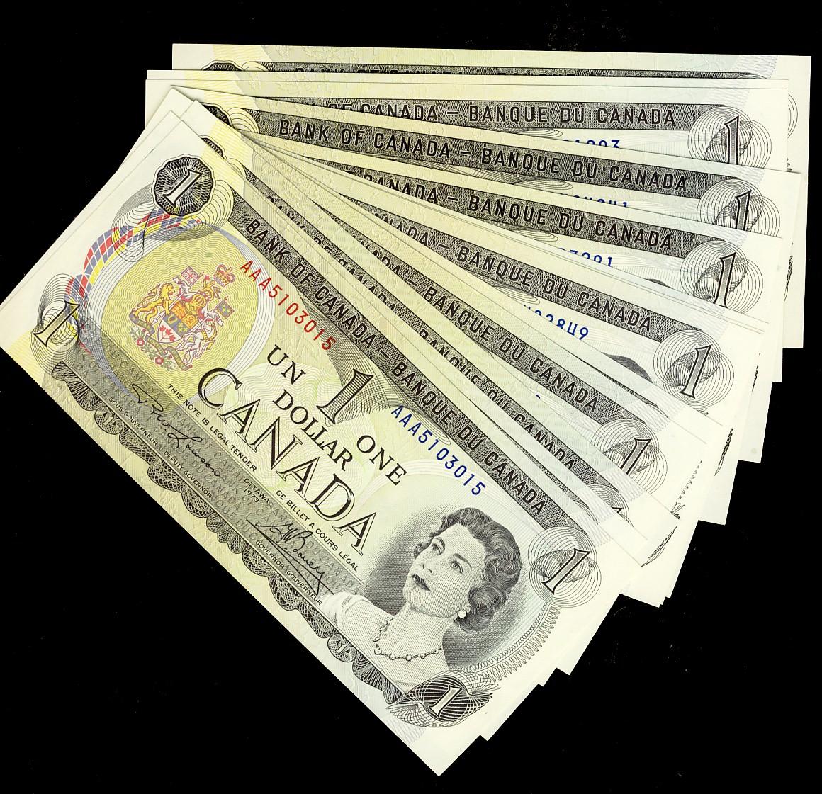 1973 $1 BC-46a Lot of 13 RADAR notes. #AAA5103015, AAB2428242, AAN8728278, AAW2590952, AFL5981895, AFS9482849, AFT9376739, ALJ3125213, EAA9277291, EAC1404041, ALN3091903, ALU4613164 and EAP0826280. ALL Crisp UNC.