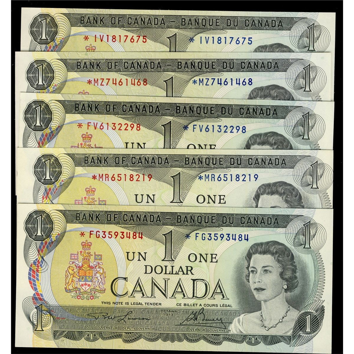 1973 $1 BC-46a Lot of replacement issues; includes notes in CUNC condition, #*IV, *MZ, *FV, *MR, an