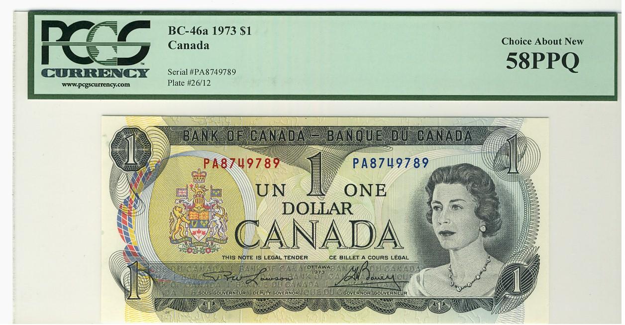 1973 $1 BC-46a #PA8749789 PCGS AU58PPQ