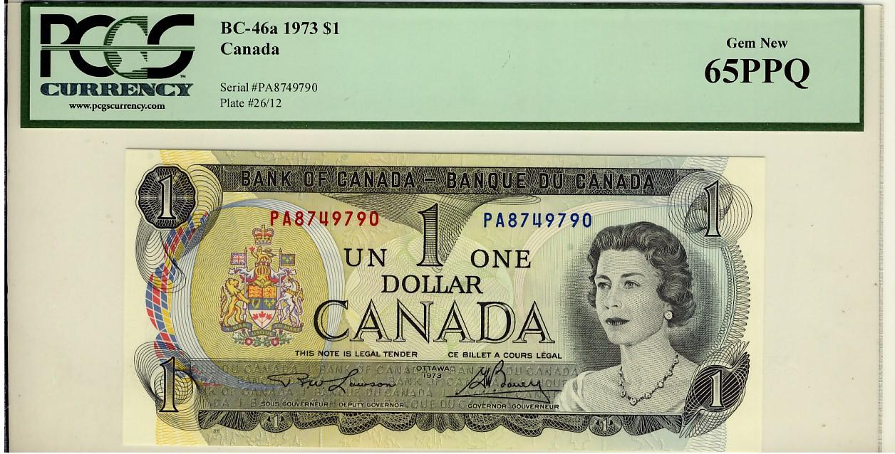 1973 $1 BC-46a #PA8749790 PCGS Gem UNC65PPQ.