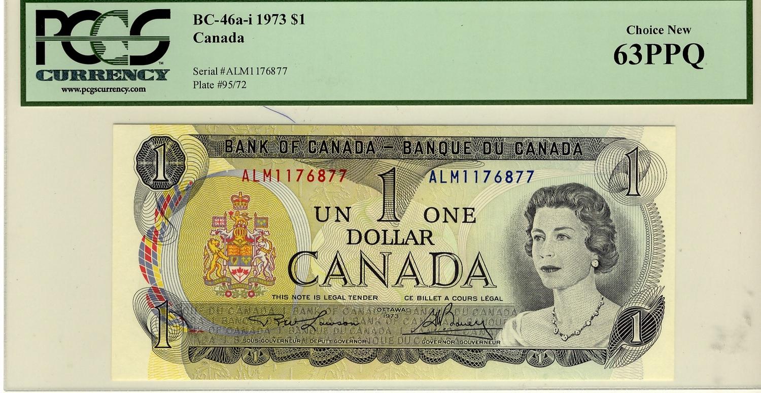 1973 $1 BC-46a-i #ALM1176877 PCGS CH UNC 63PPQ. Scarce prefix.