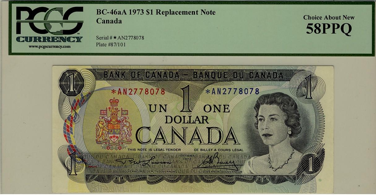 1973 $1 BC-46aA *A/N2778078 PCGS AU58