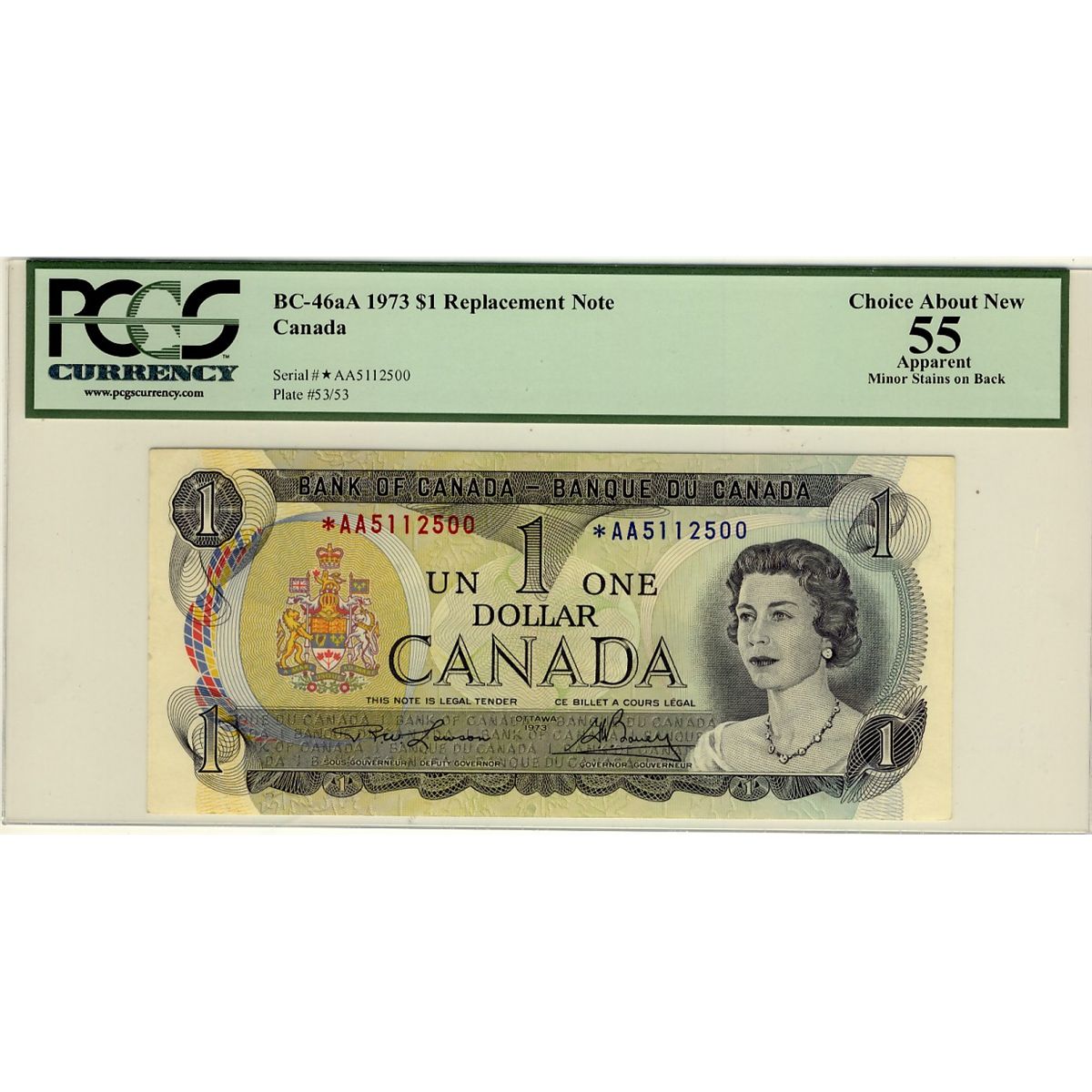 1973 $1 BC-46aA *AA5112500 PCGS AU55 App. Rare replacement note.