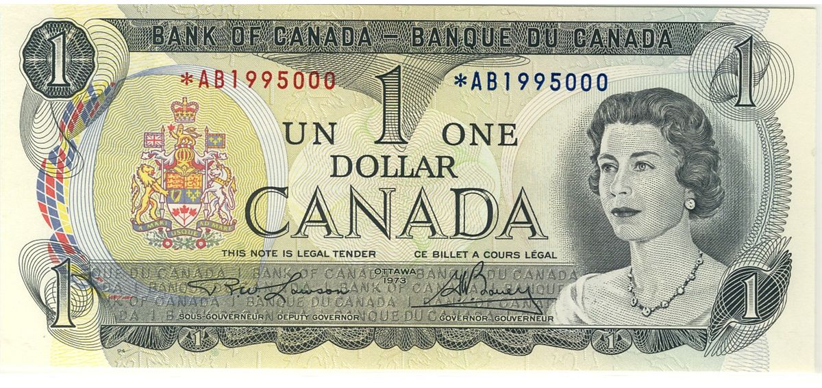 1973 $1 BC-46aA #*AB1995000 CCCS Gem UNC66. Strong and clean colours. So bright and attractive. Worth a premium bid. Will be difficult to improve on this one.