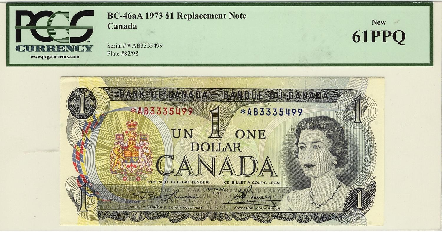 1973 $1 BC-46aA #*AB3335499 PCGS UNC61PPQ. Very rare prefix.