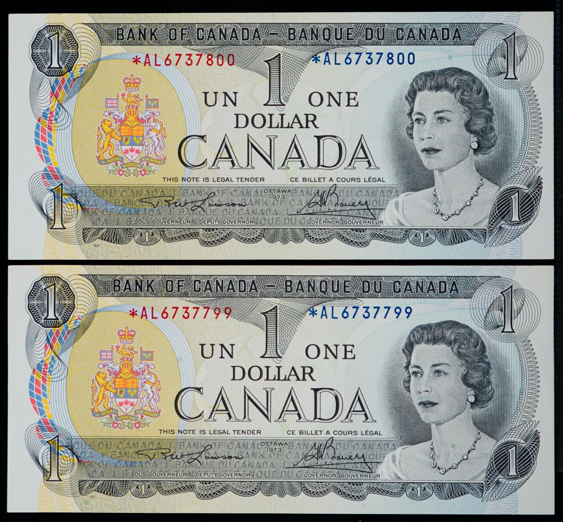 1973 $1 BC-46aA *AL6737799-7800 - Lot of 2 consecutive notes Unc to Choice Uncirculated.
