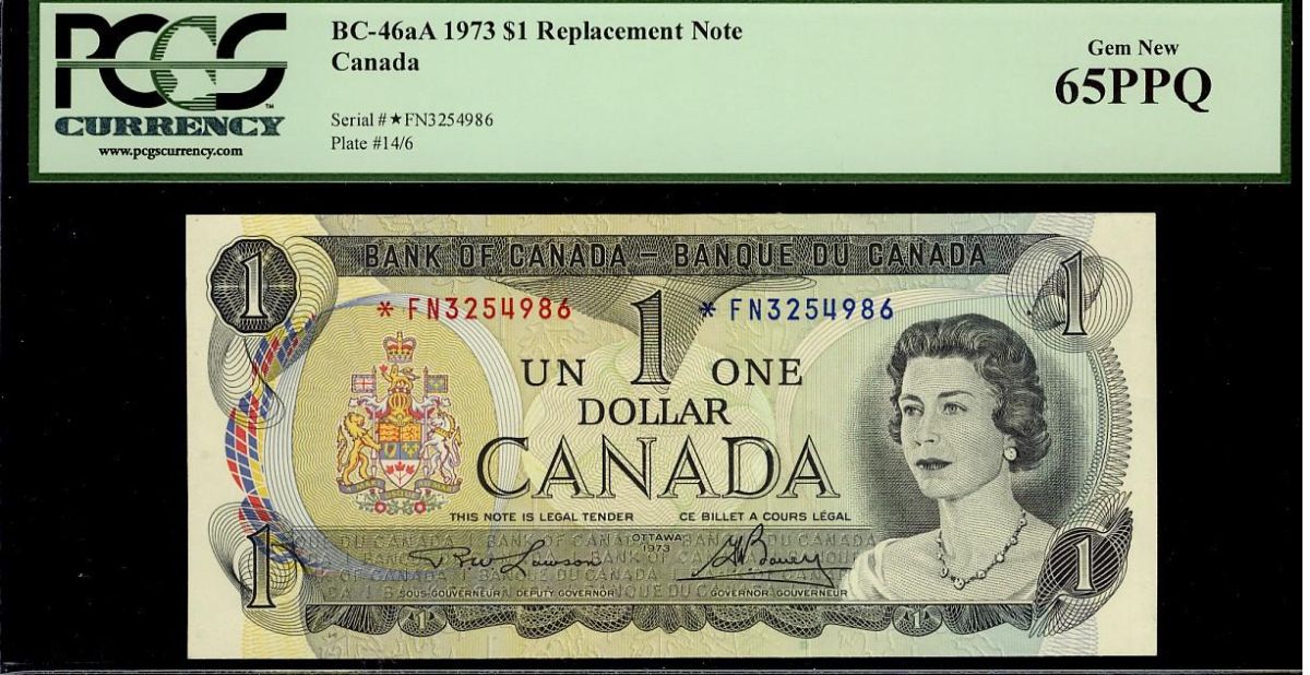1973 $1 BC-46aA #*F/N3254986 PCGS UNC65PPQ