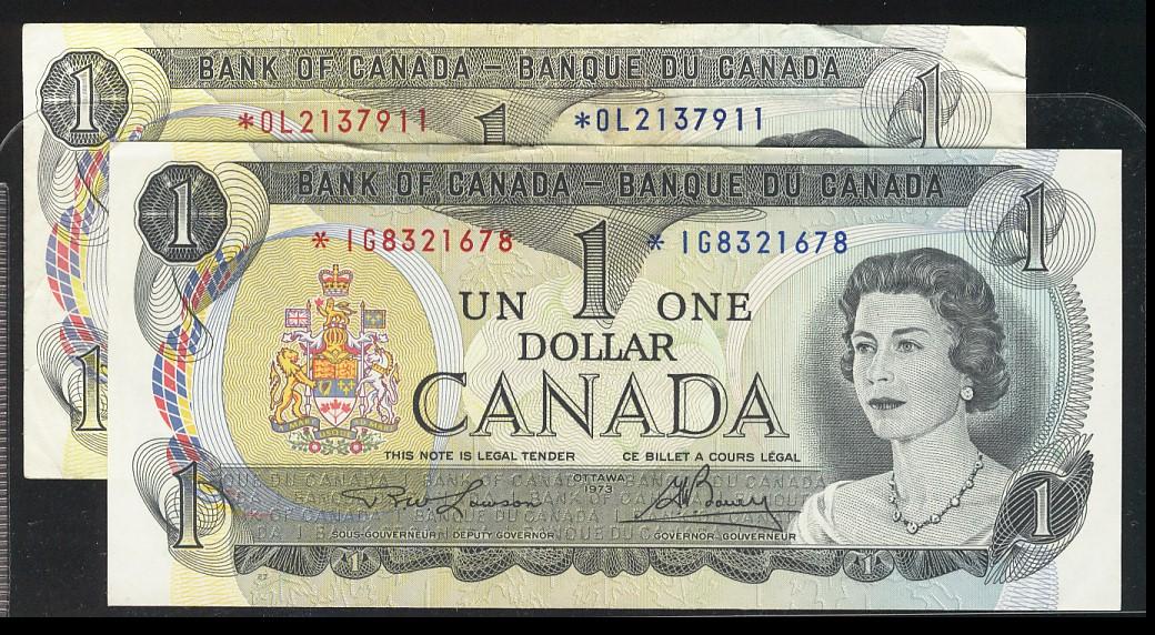 1973 $1 BC-46aA Lot of 2 better replacement notes. *OL in VF+ , *IG in AU+.