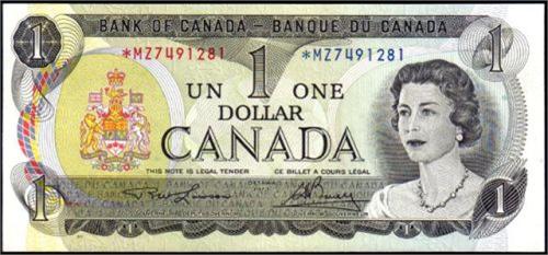 1973 One Dollar Lawson-Bouey BC-46aA serial number *MZ7491281, Uncirculated