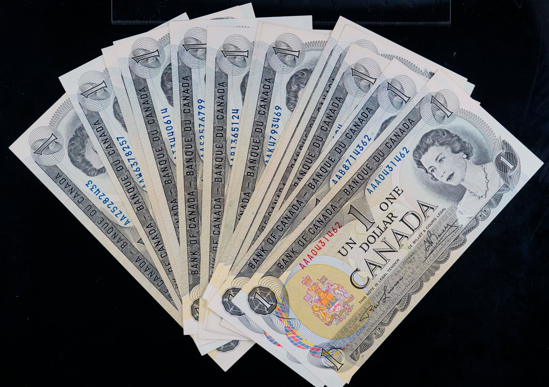 1973 $1 BC-46aA-i " 17 note set" with prefix AAA-AAZ. EF to Gem Unc.