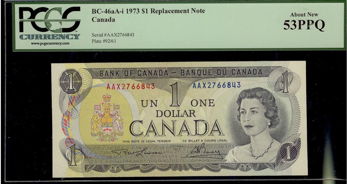 1973 $1 BC-46aA-i AAX2766843 PCGS AU53