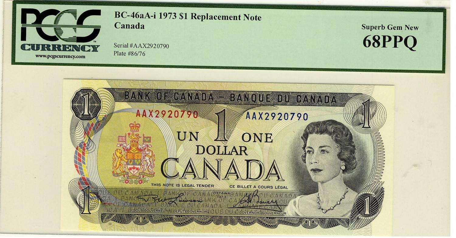 1973 $1 BC-46aA-i #AAX2920790 PCGS Superb Gem UNC68PPQ.