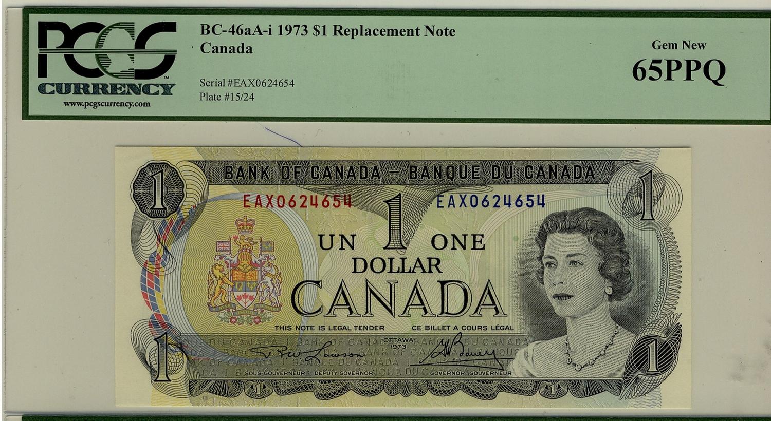 1973 $1 BC-46aA-i #EAX0624654 Litho eng. PCGS Gem UNC65PPQ.