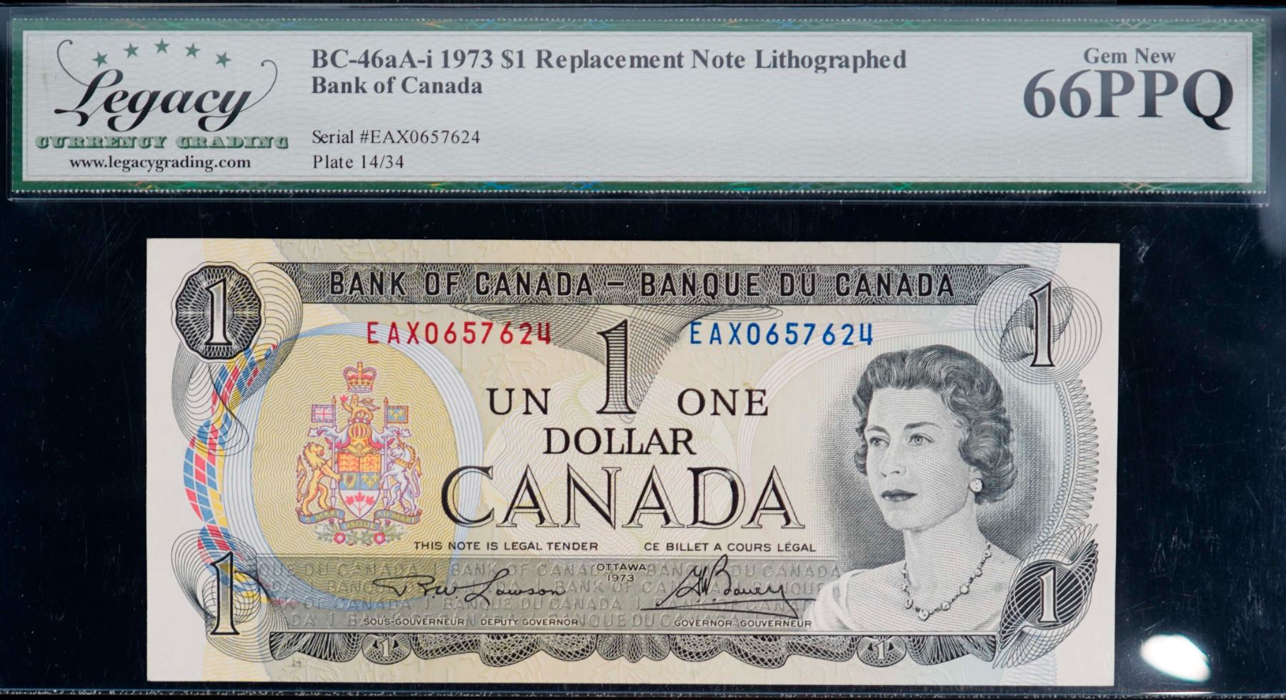 1973 $1 BC-46aA-i #EAX0657624, Legacy Gem Superb Gem Uncirculated-66PPQ