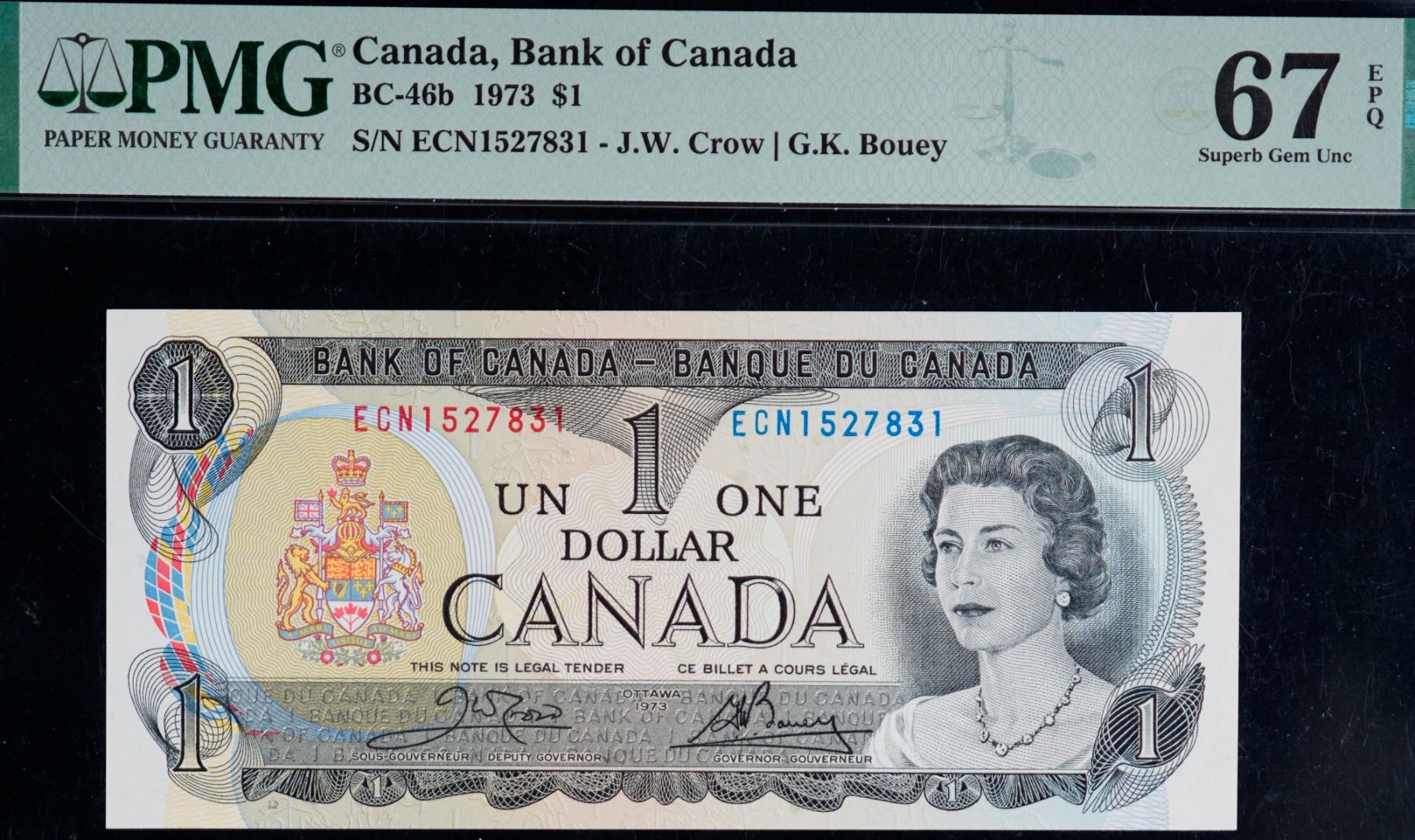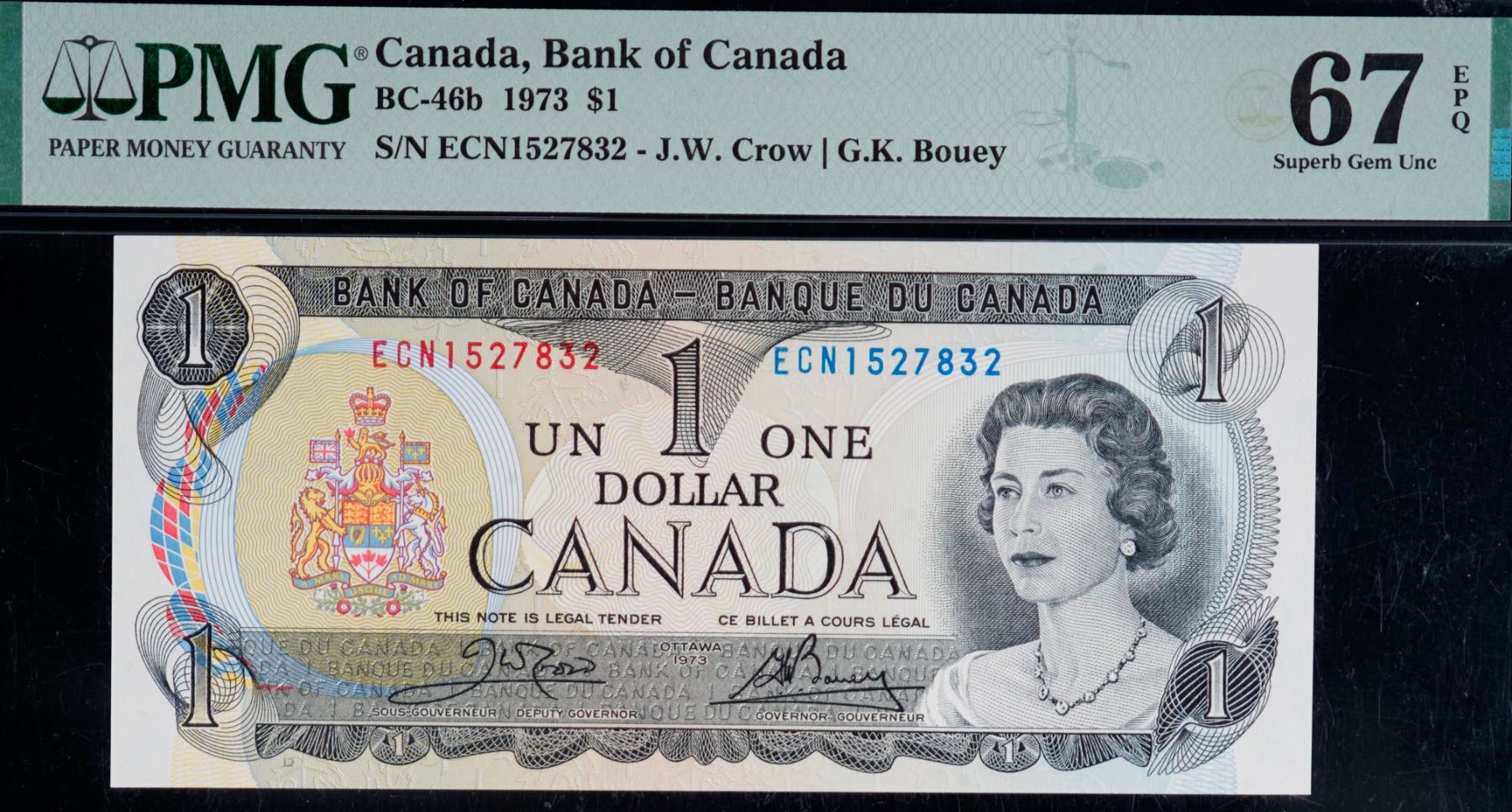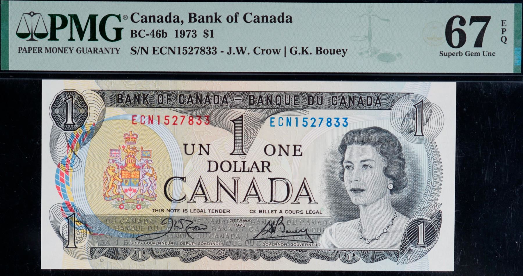 1973 $1 BC-46b #ECN1527831-33, PMG Superb Gem Superb Gem Uncirculated-67EPQ. Lot of 3 consecutive notes.