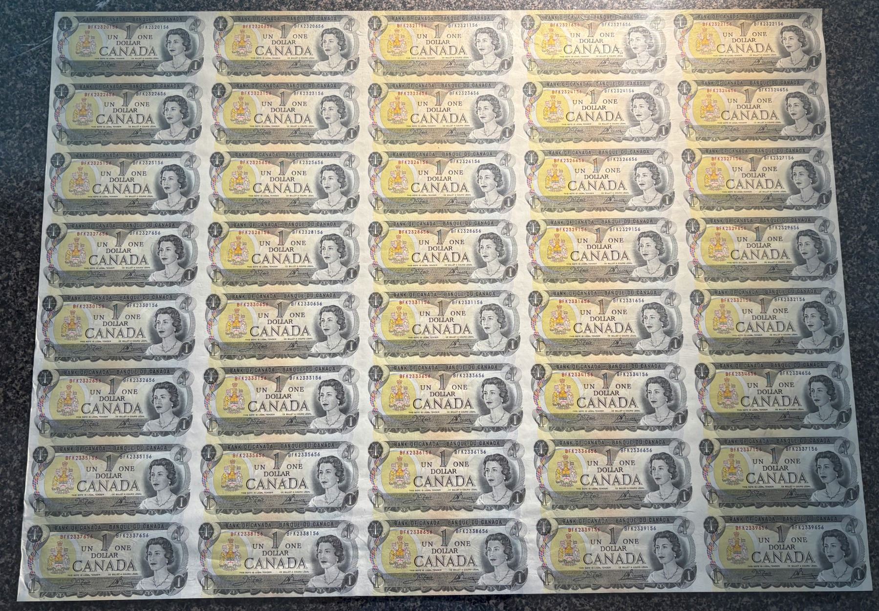 1973 $1 BC-46b Original Roll of 40 Uncut notes BABN Sheet Regular. Serial #BFK series. 4 X 10 Format.