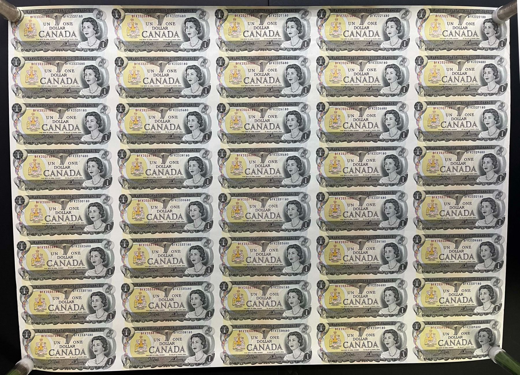 1973 $1 BC-46b Original Roll of 40 Uncut notes BABN Sheet Regular. Serial #BFK series. 4 X 10 Format.