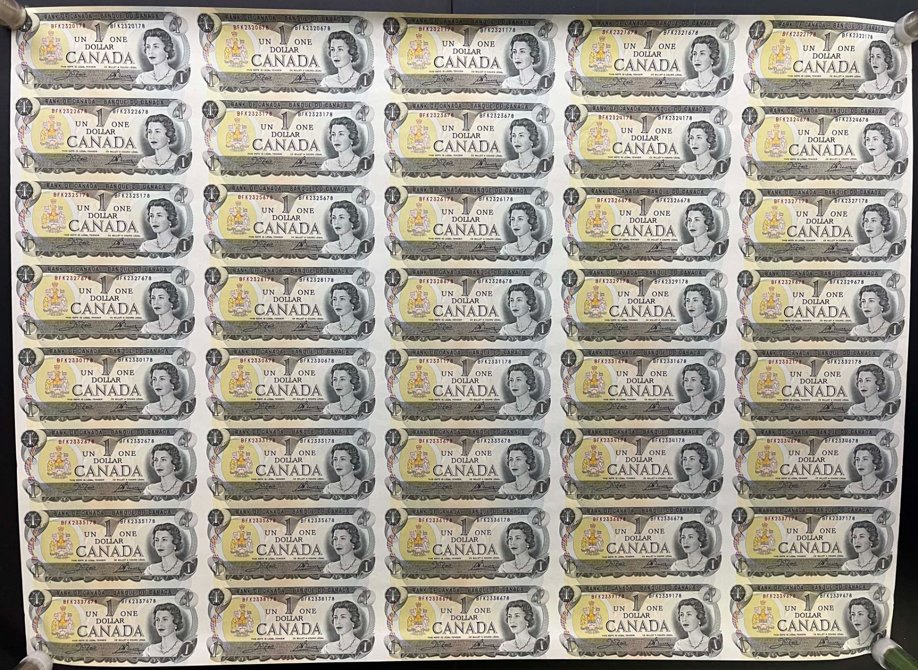 1973 $1 BC-46b Original Roll of 40 Uncut notes BABN Sheet Regular. Serial #BFK series. 4 X 10 Format.