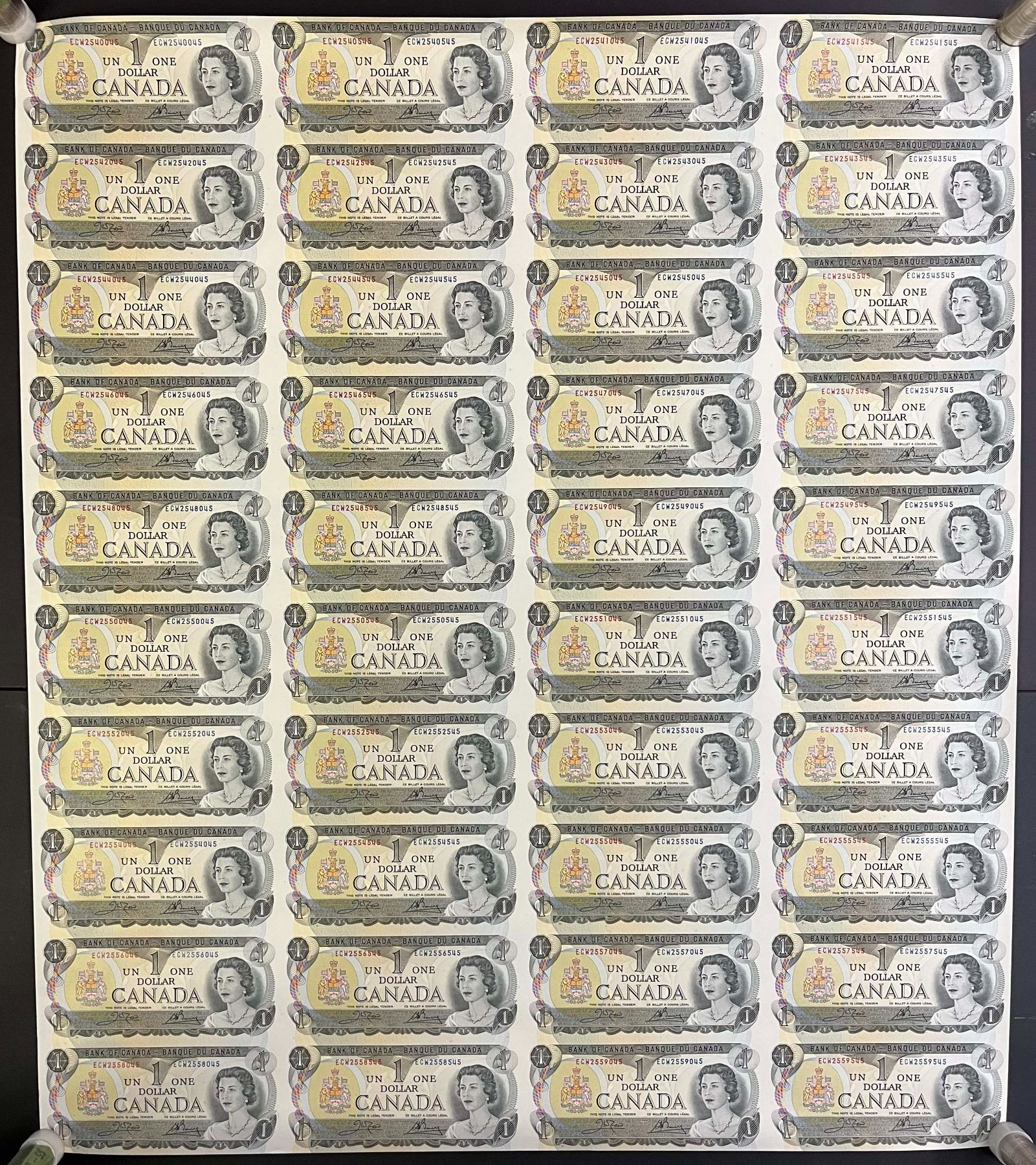 1973 $1 BC-46b Original Roll of 40 Uncut notes CBN Sheet Regular. Serial #ECW series. 5 X 8 Format.