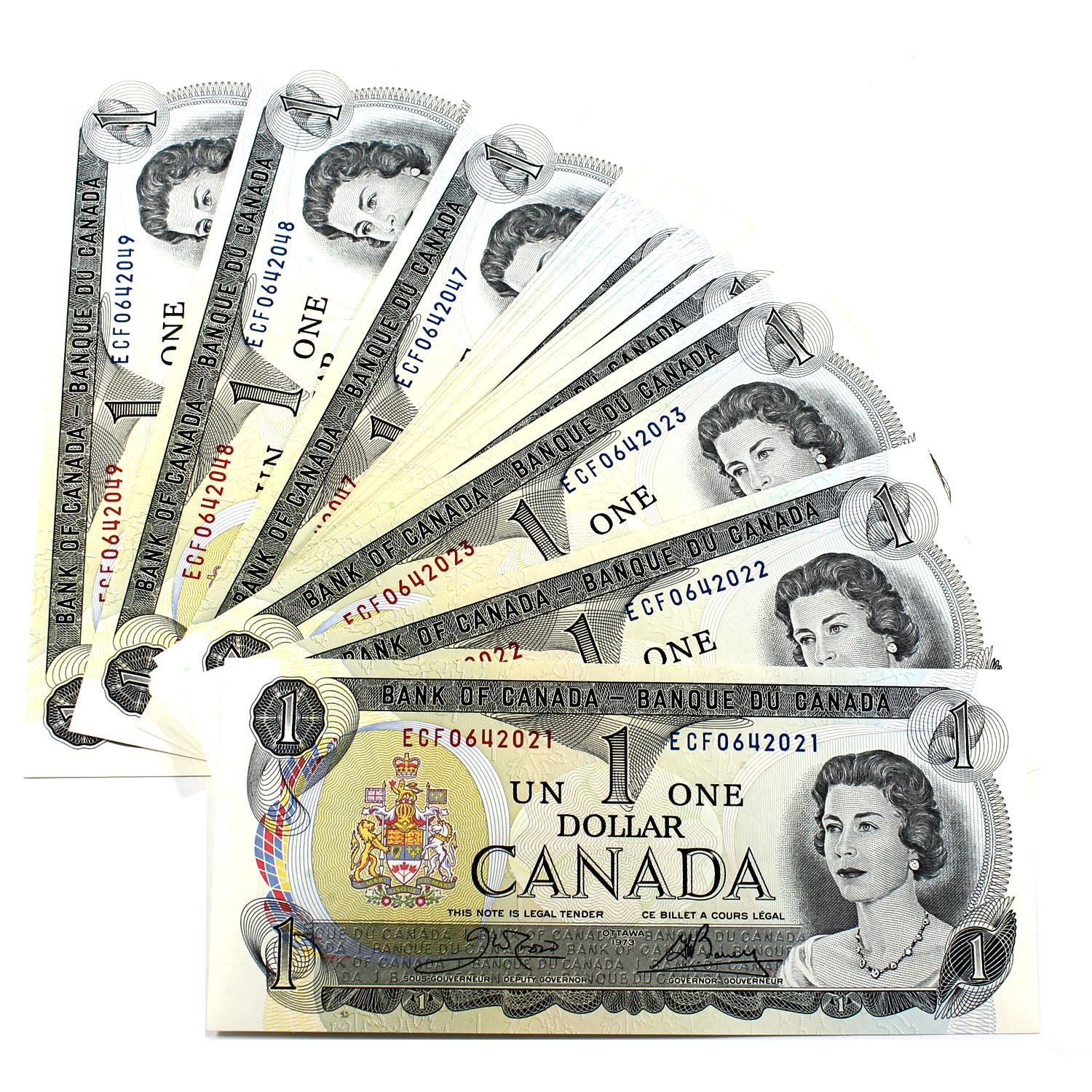 1973 $1 Bank of Canada Crow-Bouey Signature Notes with Consecutive Serial Numbers ECF0642021-49 UNC. 29pcs