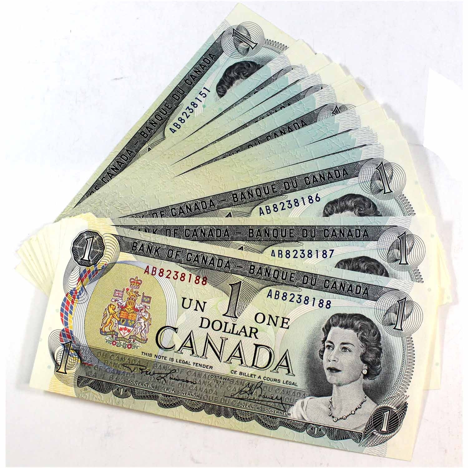 1973 $1 Bank of Canada Lawson-Bouey Consecutive Banknotes. 38pcs