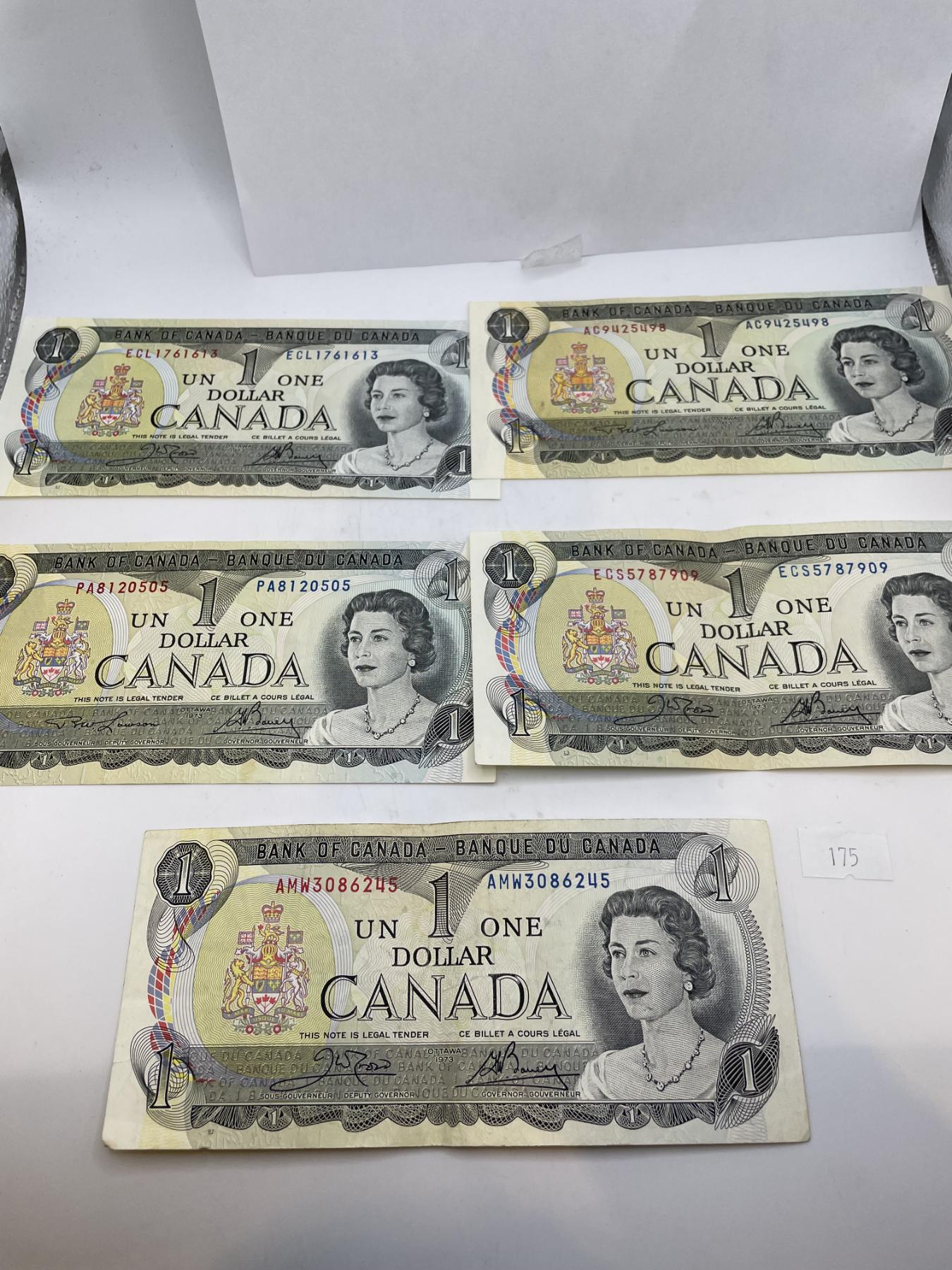 1973 $1 Canadian Banknotes