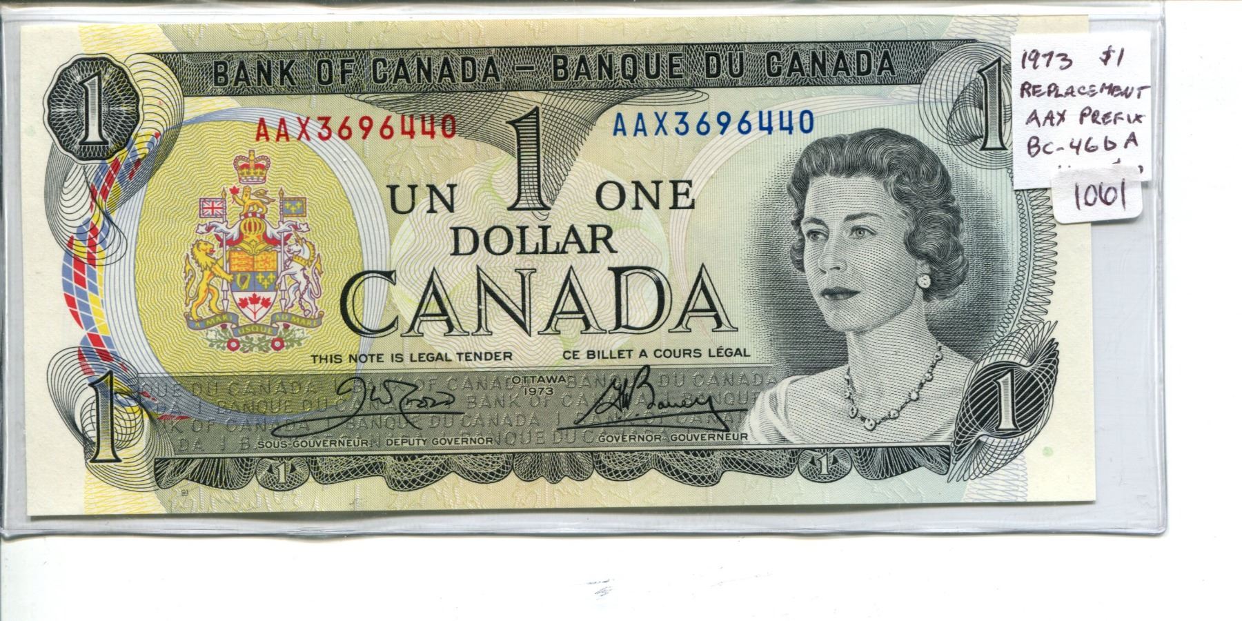 1973 $1. Crow-Bouey signatures. 3-Letter Replacement Note. AAX Prefix. BC-46bA. Unc.