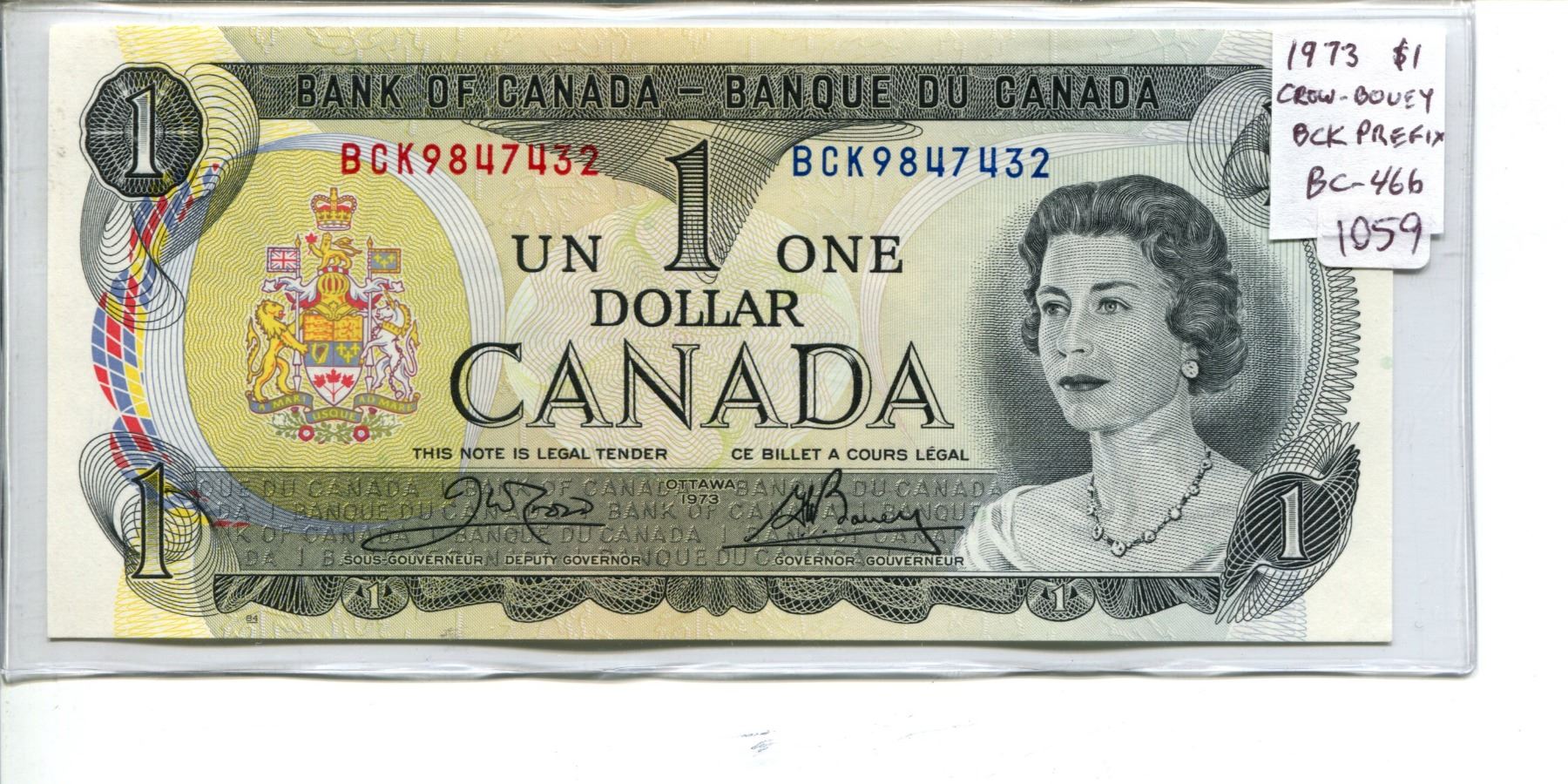 1973 $1. Crow-Bouey signatures. BCK Prefix. BC-46b. Unc.