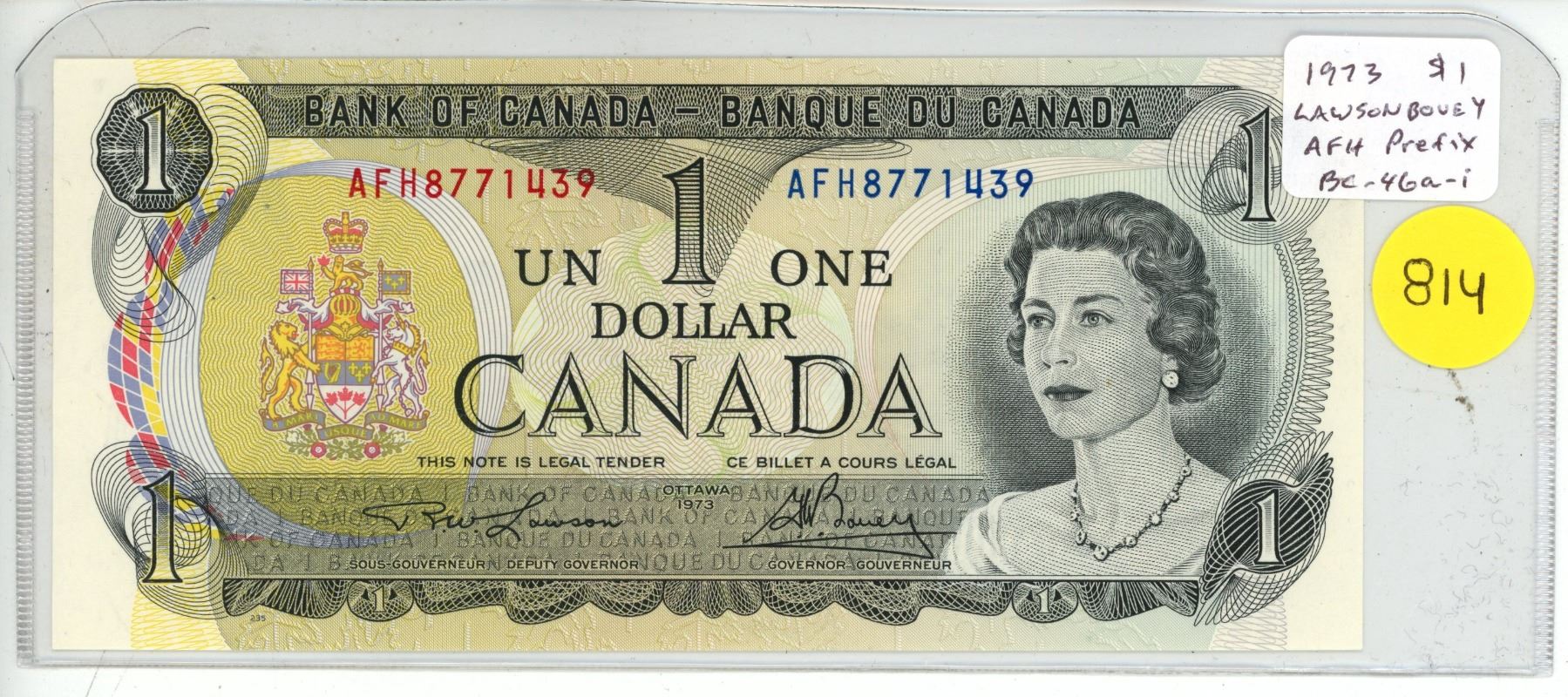 1973 $1. Lawson-Bouey signatures. AFH 3-digit Prefix. BC-46a-i. Gem Uncirculated.