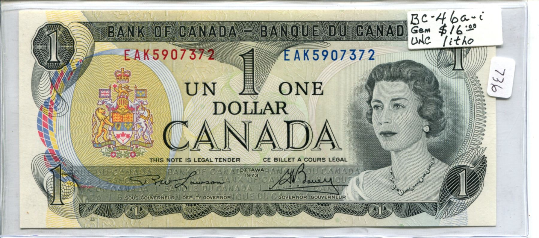 1973 $1. Lawson-Bouey signatures. EAK Prefix. Litho Engraved Back. BC-41-i. Gem Uncirculated.