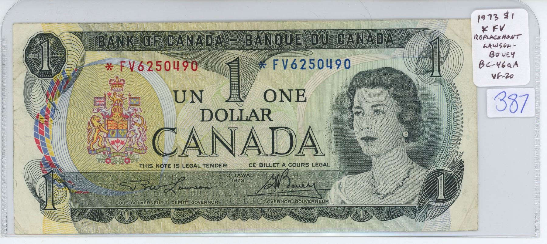 1973 $1. Lawson-Bouey signatures. *FV Replacement Prefix. BC-46aA. VF-20.