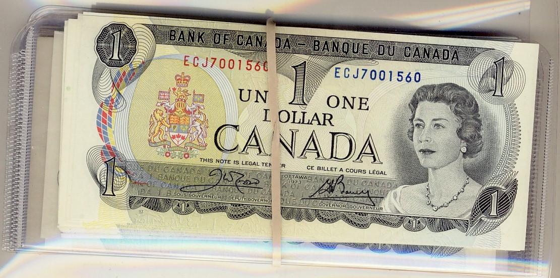 1973 $1 Lot of banknotes includes, BC-46a (34), BC46b (22),