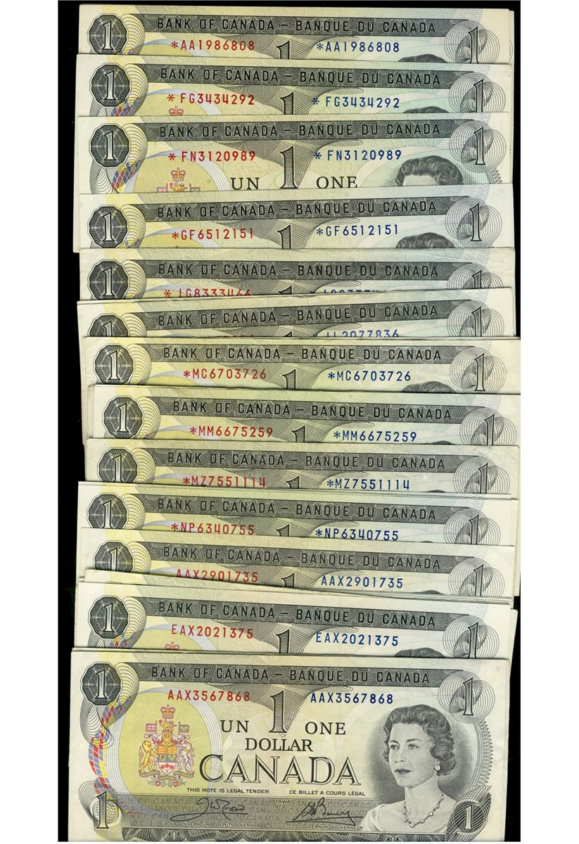 1973 $1 Replacement Lot; includes BC-46aA #*AA(4), *FG(1), 8FN1), *GF(1), *IG(1), *IL(2), *MC(2), *