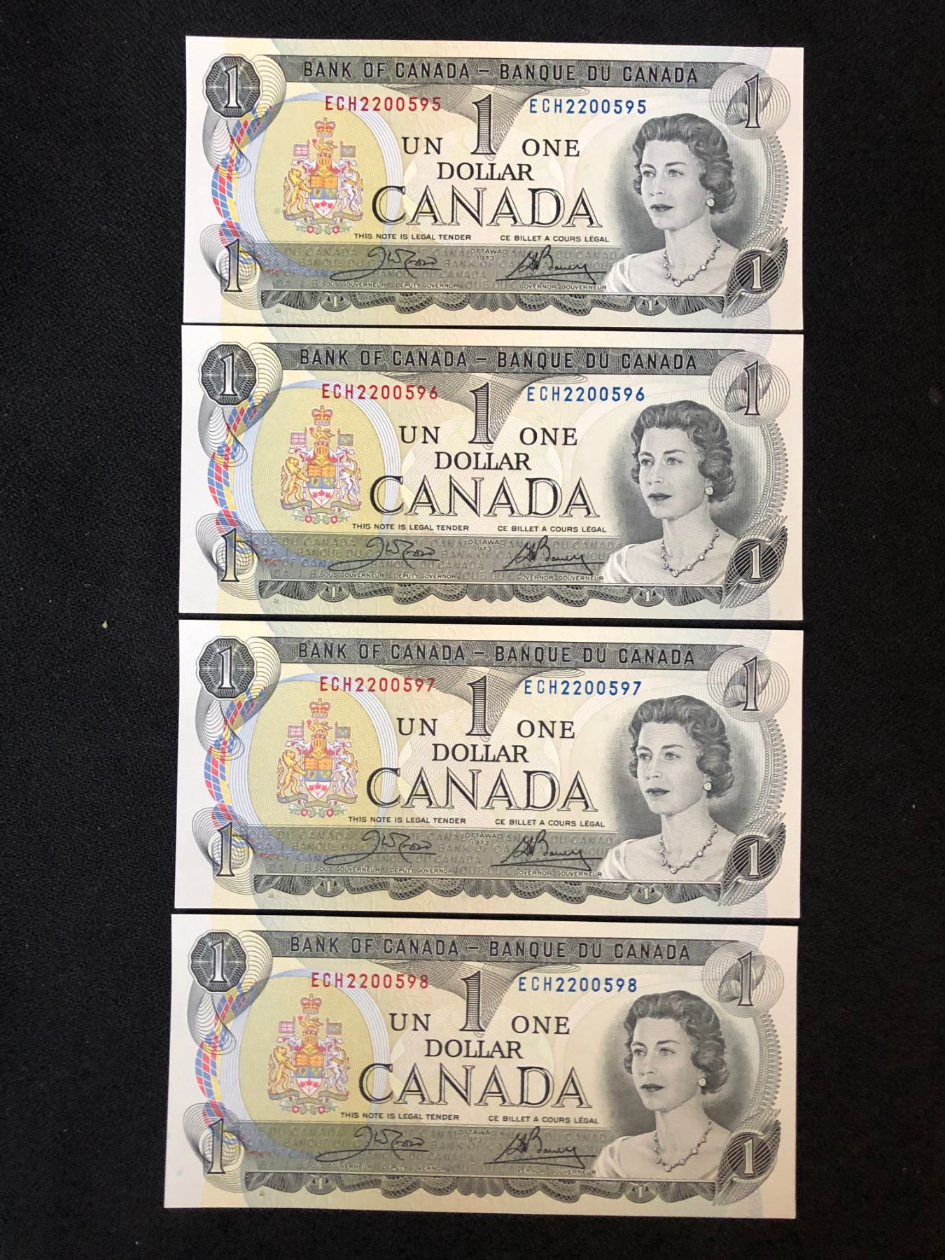 1973 $1 UNCIRCULATED SEQUENTIAL CANADIAN BANK NOTES