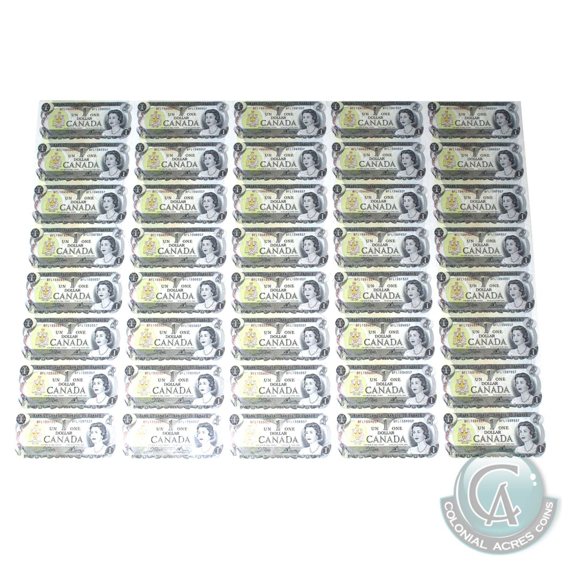 1973 $1 Uncut Sheet of 40 Notes, 5x8 format, Prefix BFL. AU+