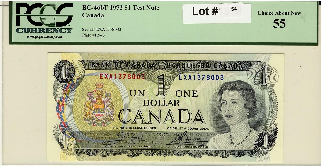 1973 $1 test note BC46bT EXA 1378003 PCGS 55