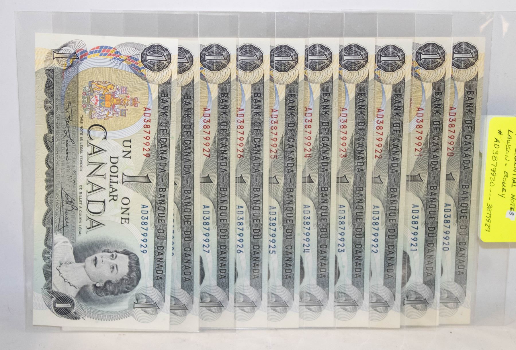 1973 10 X BANK OF CANADA $1. SEQUENTIAL,