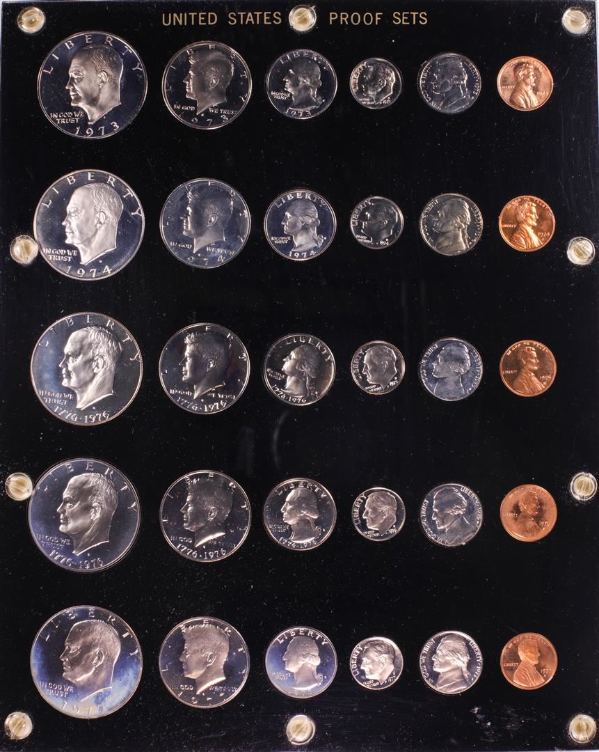 One 1973-1977 (5) Coin Proof Sets in Capitol Plastic Holder.