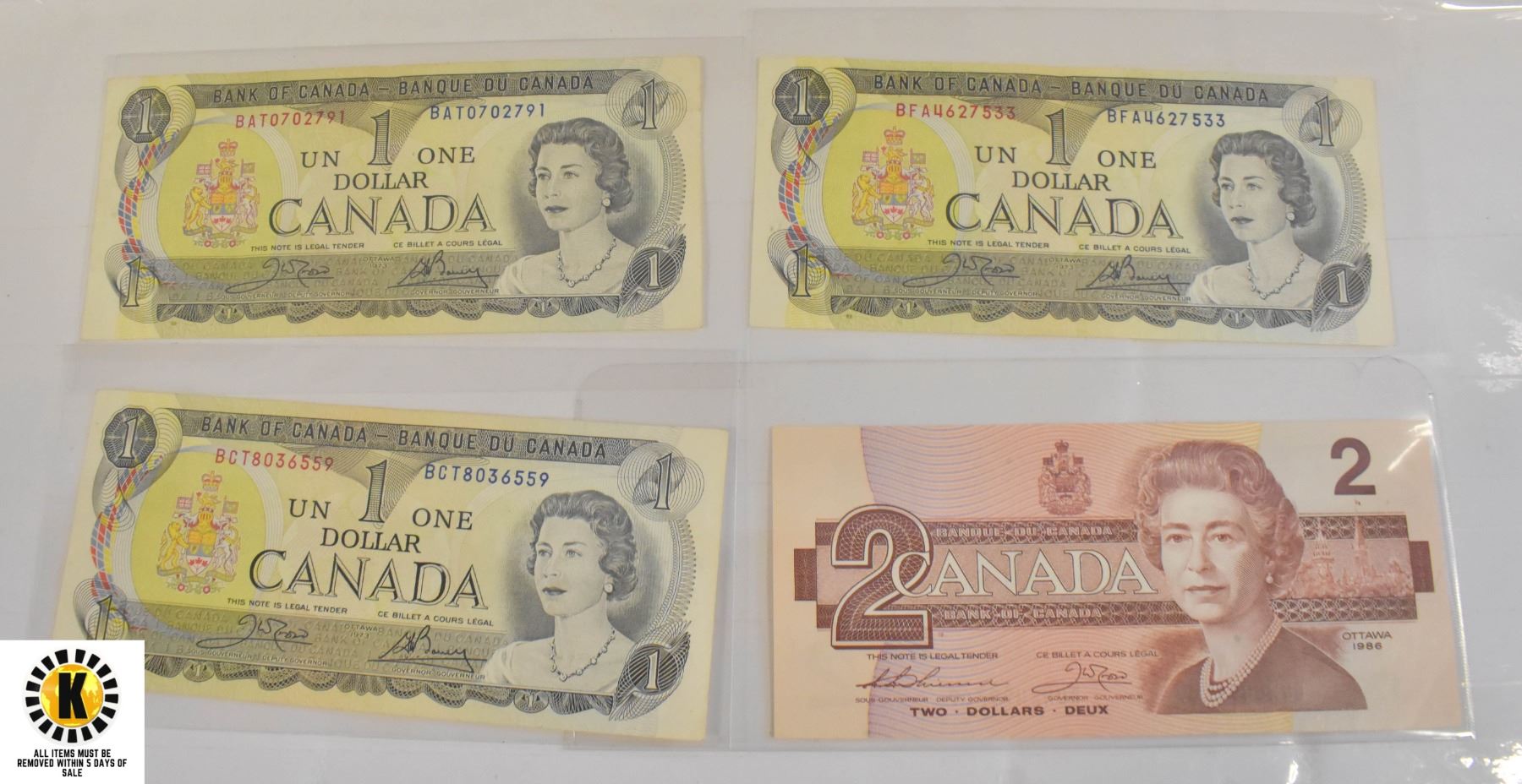 1973-1986 LOT OF 4 CANADA $1 AND $1 DOLLAR NOTES